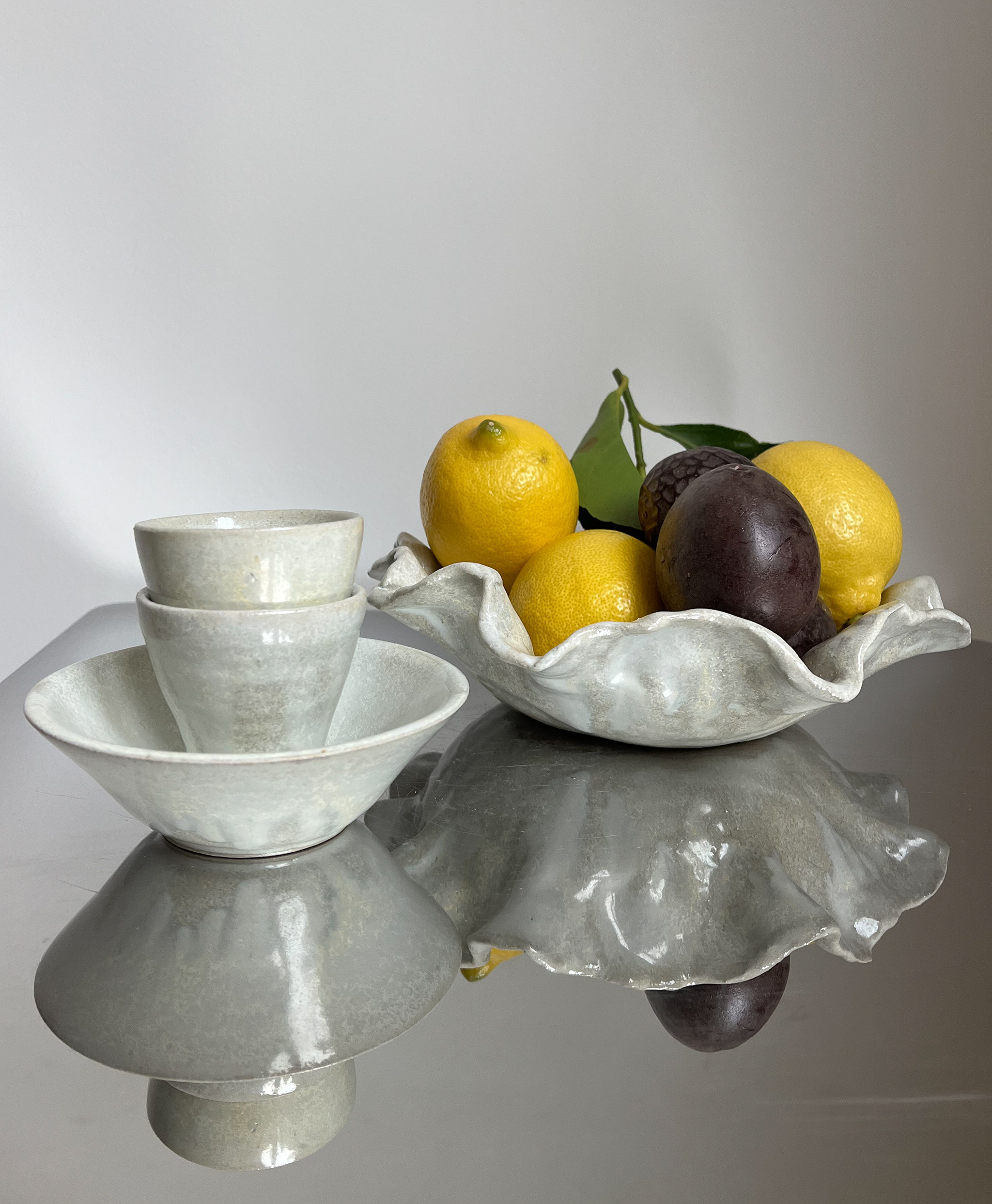 Clay thrown on the potters wheel. Orion glazing. ⌀ 4 cm, hight: 6 cm. (2023) - Price on request.